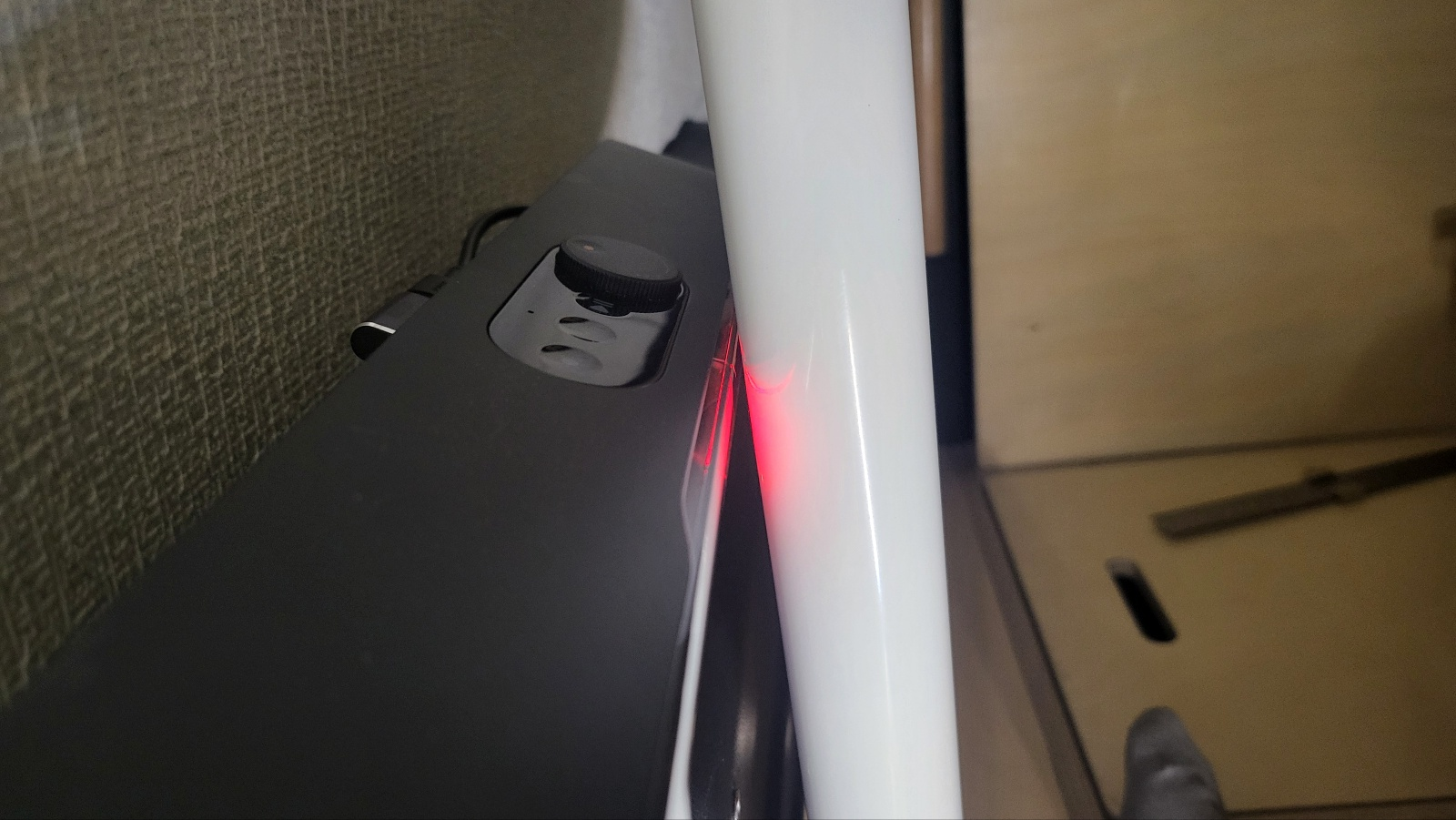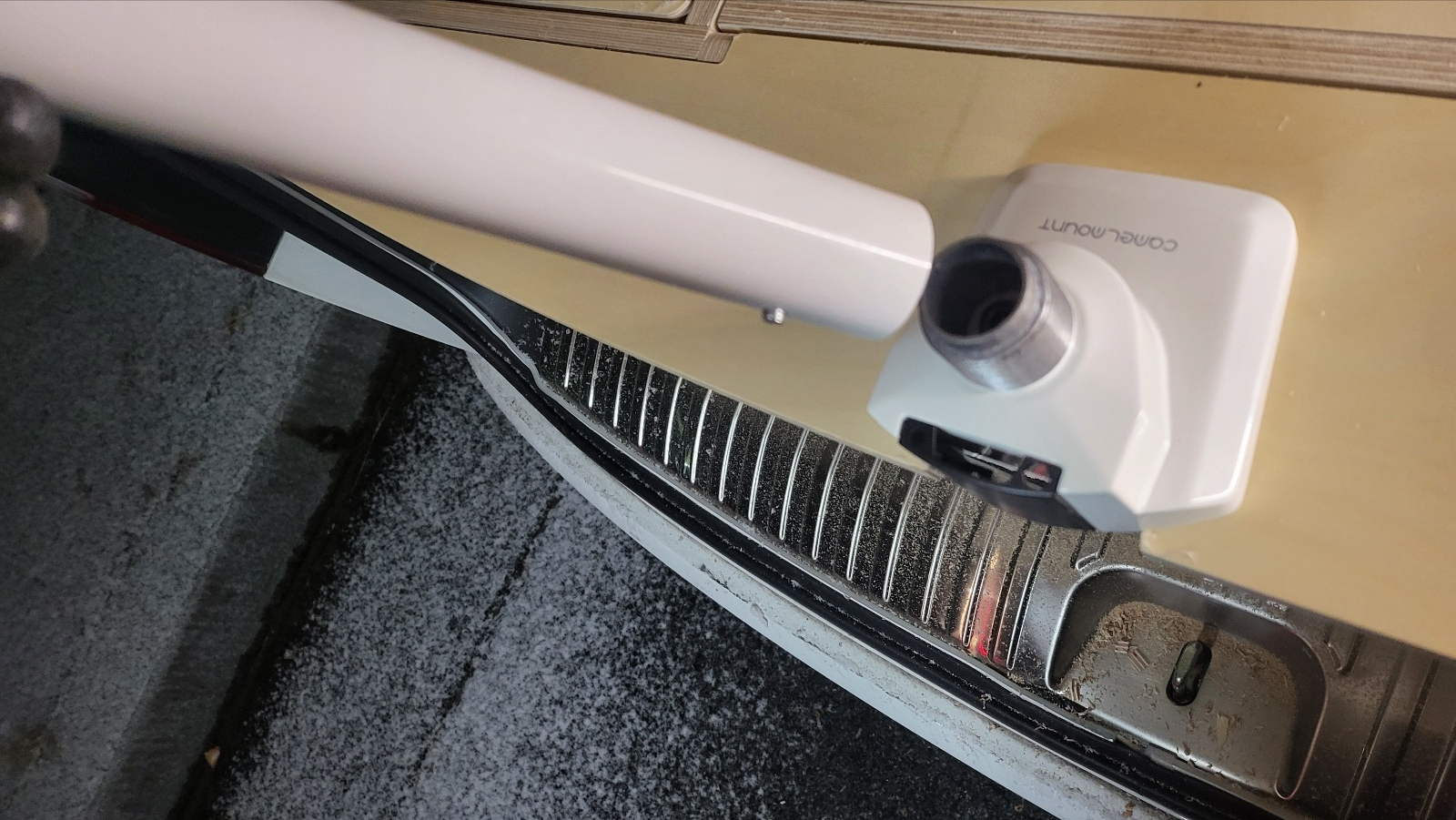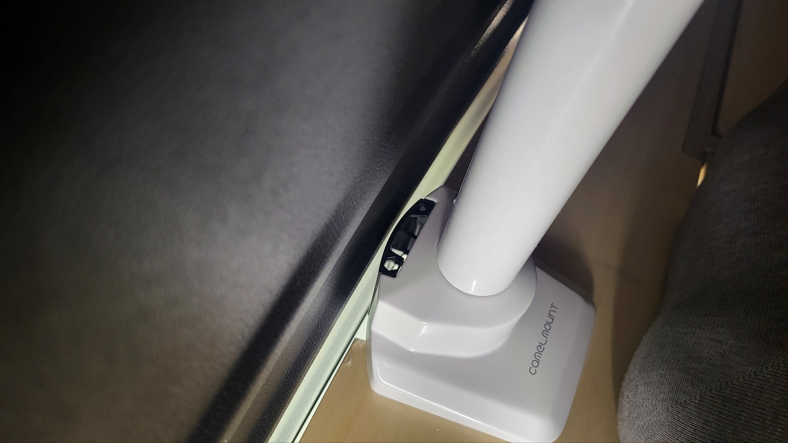 - 모니터 거치 팔 부분을 밴드로 고정해두면 방지턱이나 급 정차 시에도 안정적으로 고정되어있지만 모니터 인접한 관절 부위는 고정되지 않은 상태여서 방지턱 몇 번만 넘어도 모니터가 아래 사진처럼 기울어진다.