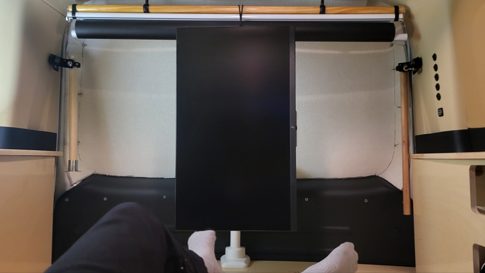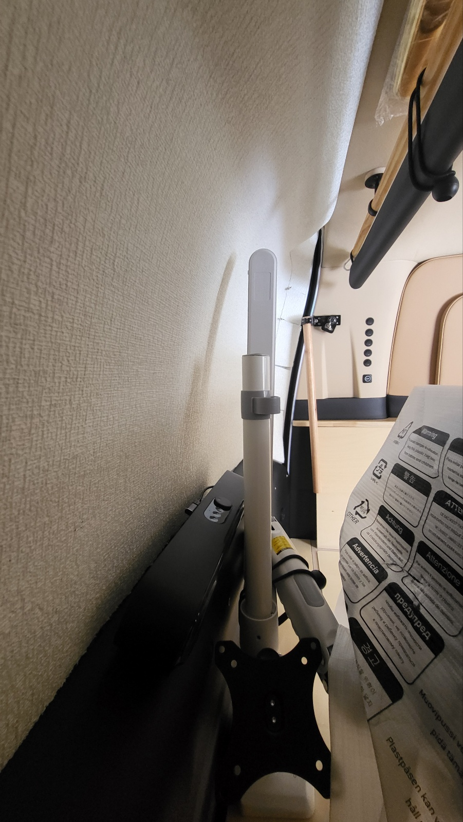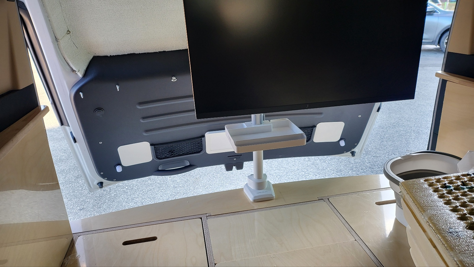 차량환경에서 모니터 거치대 지지력 부실 스타리아 차량 뒷문에 인접하여 아래 사진처럼 모니터 거치대 장착(장착 과정 상세보기 : https://igotit.tistory.com/5933 )했는데, 정차 중 에는 거치대가 충