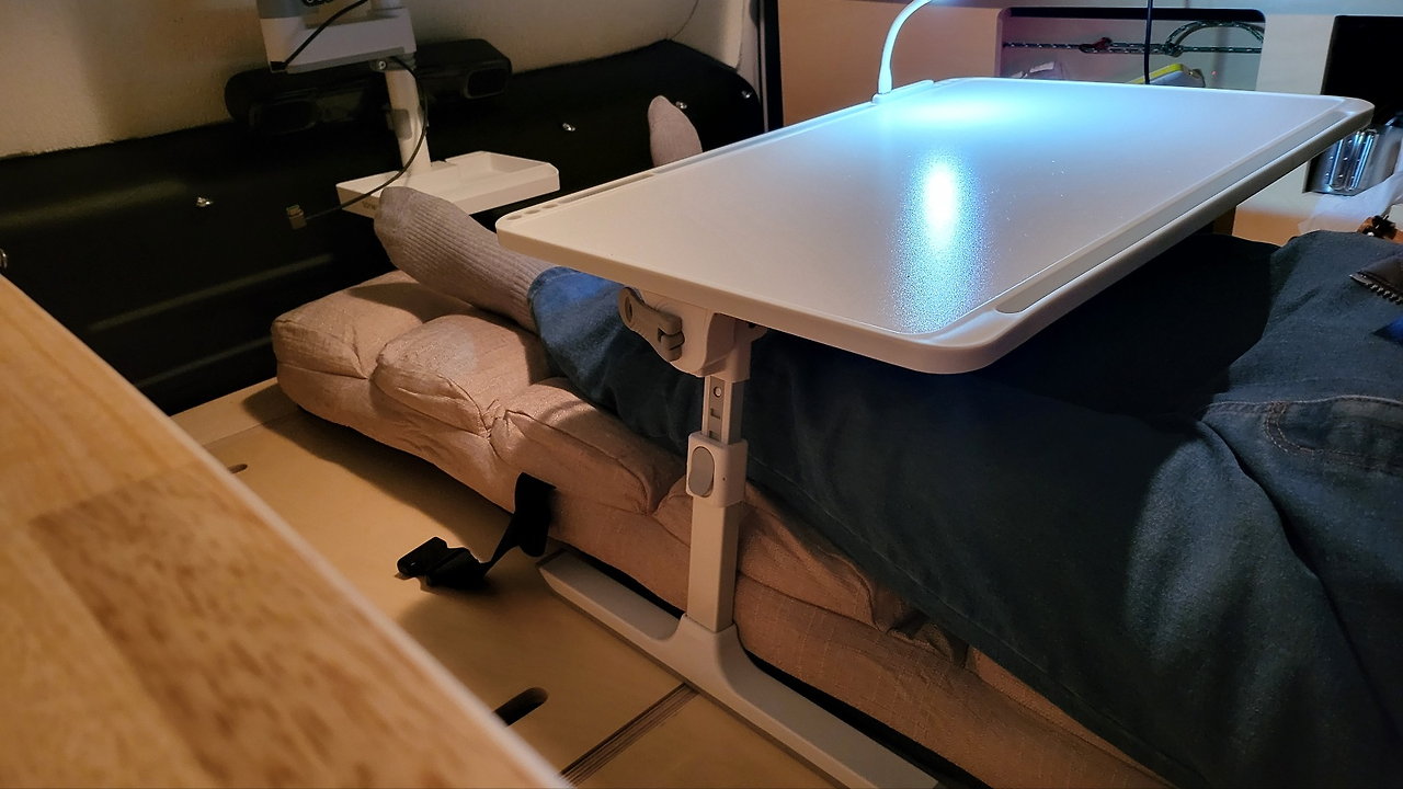 테이블 활용도가 높아서 접어 보관할 일이 없다. 항상 펼쳐둔 상태로 두면 좋은데 차량 주행중 급정지 상황에서도 날라다니지 않도록 테이블을 잡아줄 수 있도록 해야한다.