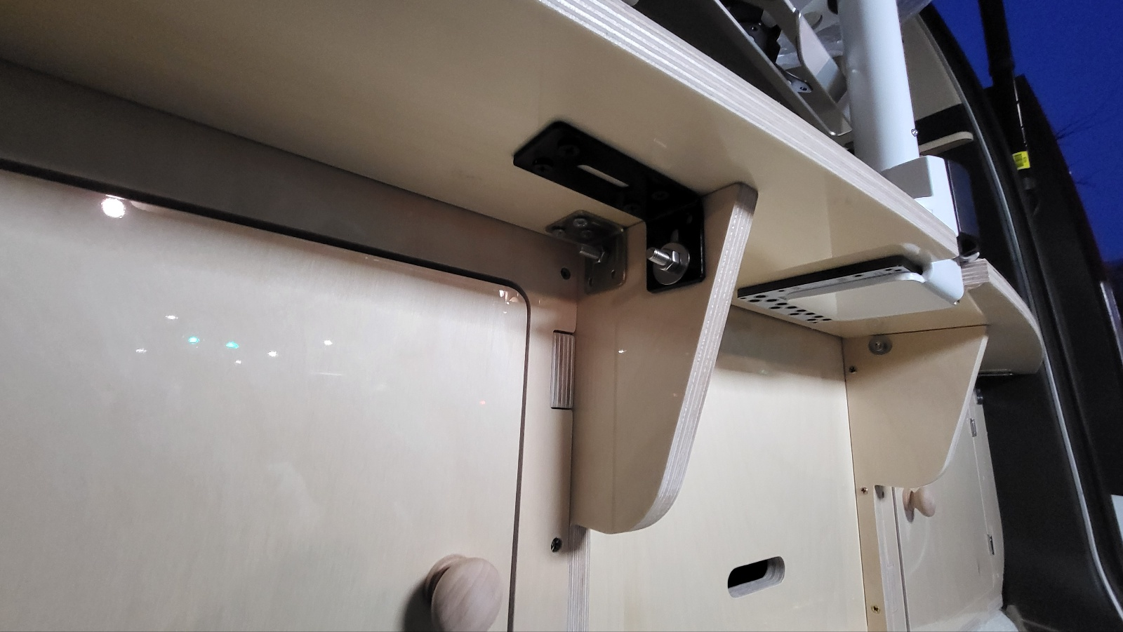 - 아래 사진의 검정색 꺽쇠 장착하여 상판을 더 강하게 고정함.