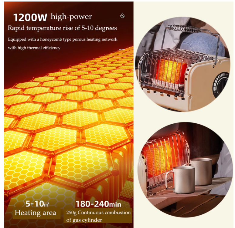 - 최대 발열량 / 지속 시간 : 최대 1.2kW 작동시 부탄가스 1통 연속 3 시간 정도.