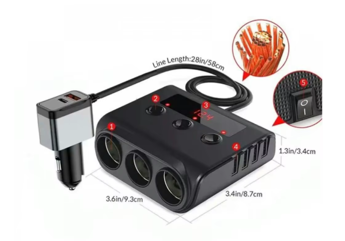 171W 9 in 1 Car Charger 3Ports Cigarette Lighter Splitter 12V 24V Fast Charger Plug Power Adapter for iPhone GPS Dashcam - AliEx
