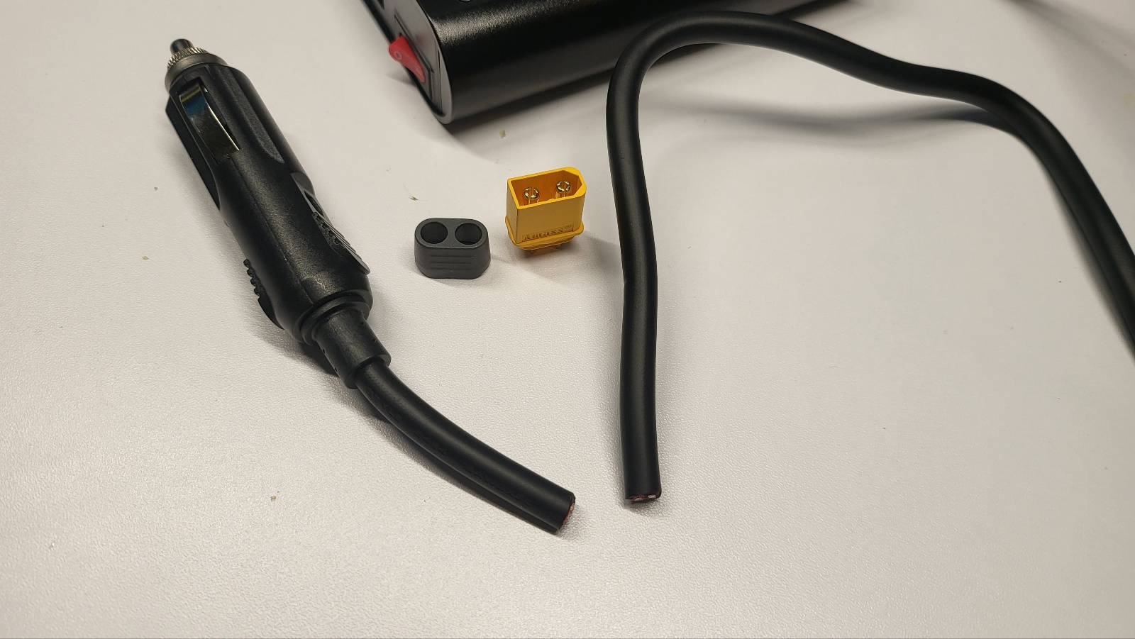 - 차량에 구비된 인산철 배터리 연결 수단이 XT60 커넥터로 되어있고, 부피 큰 시거소켓 거쳐서 연결하는 것보다는 훨씬 사이즈가 작은 XT60 커넥터 수컷 장착하여 연결하기로 함.