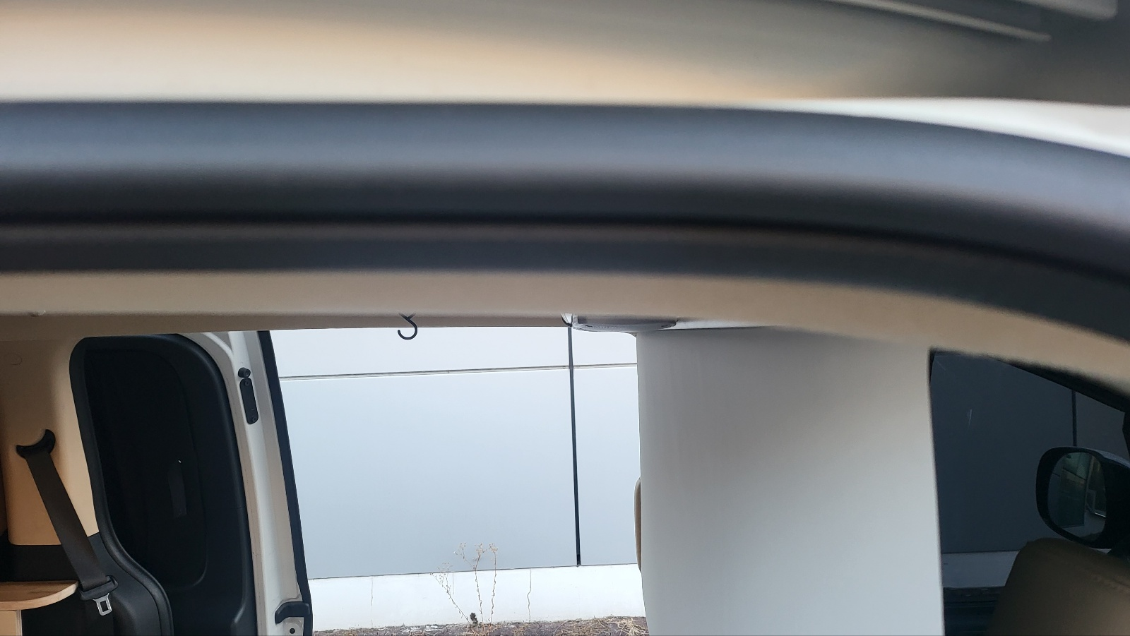 측면에서 보면 천정에 밀착 되어있어 차량 타고 내릴때 머리 부딪히지 않는다.