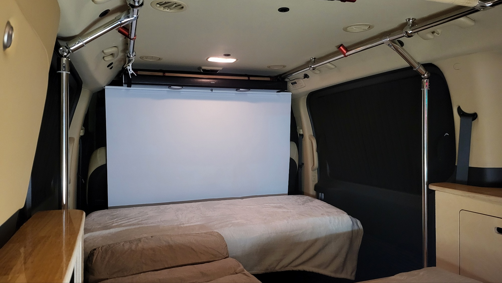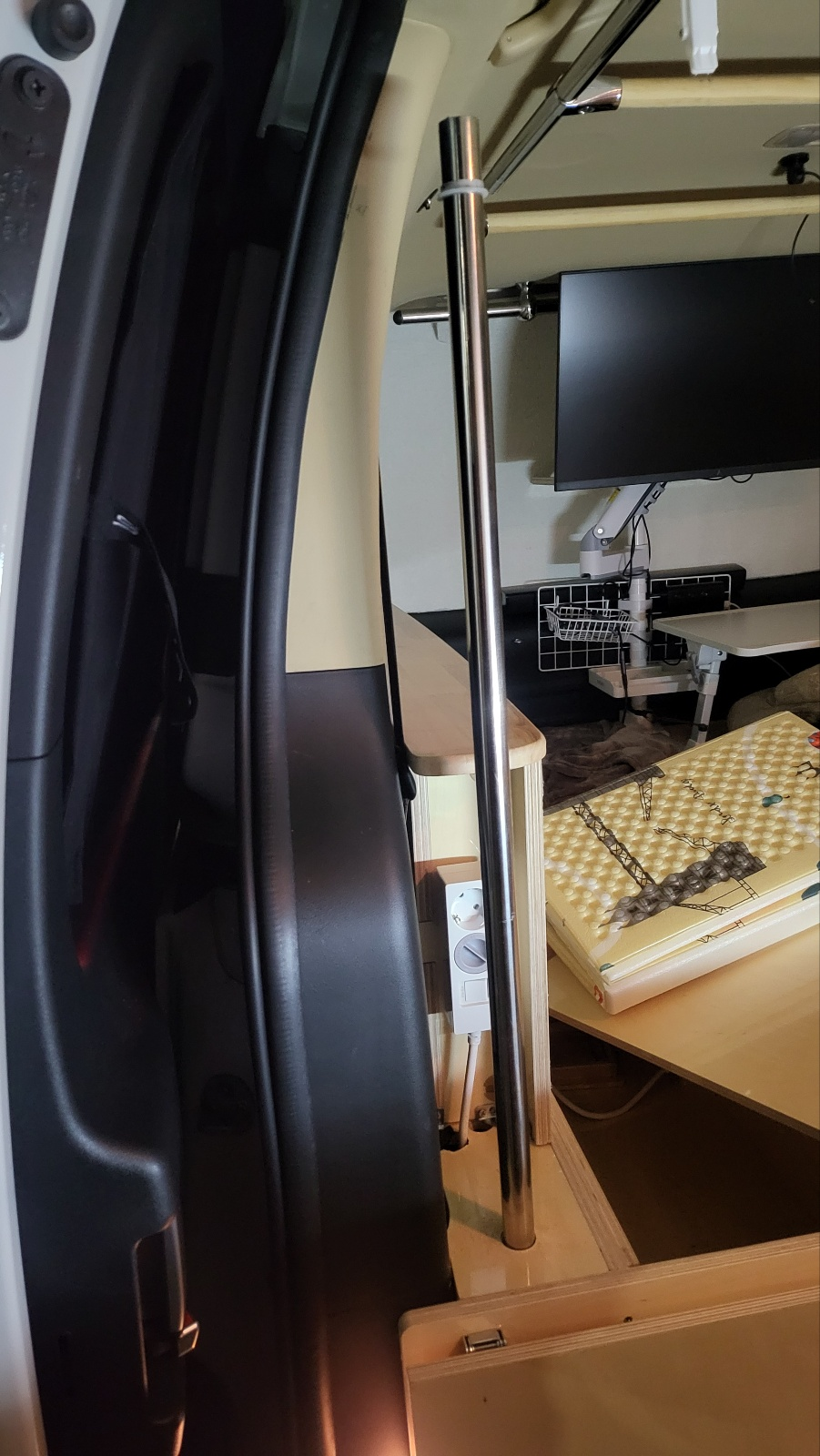 세로봉 설치 - 차량 천장 철골에 M8 팝너트 고정 해둔 것을 이용하여, 지름 25mm, 길이 2m 스텐 파이프 튼튼하게 고정한다. - 차량 프레임에 팝너트 달기 상세. 차량 프레임에 팝너트 , 잭너
