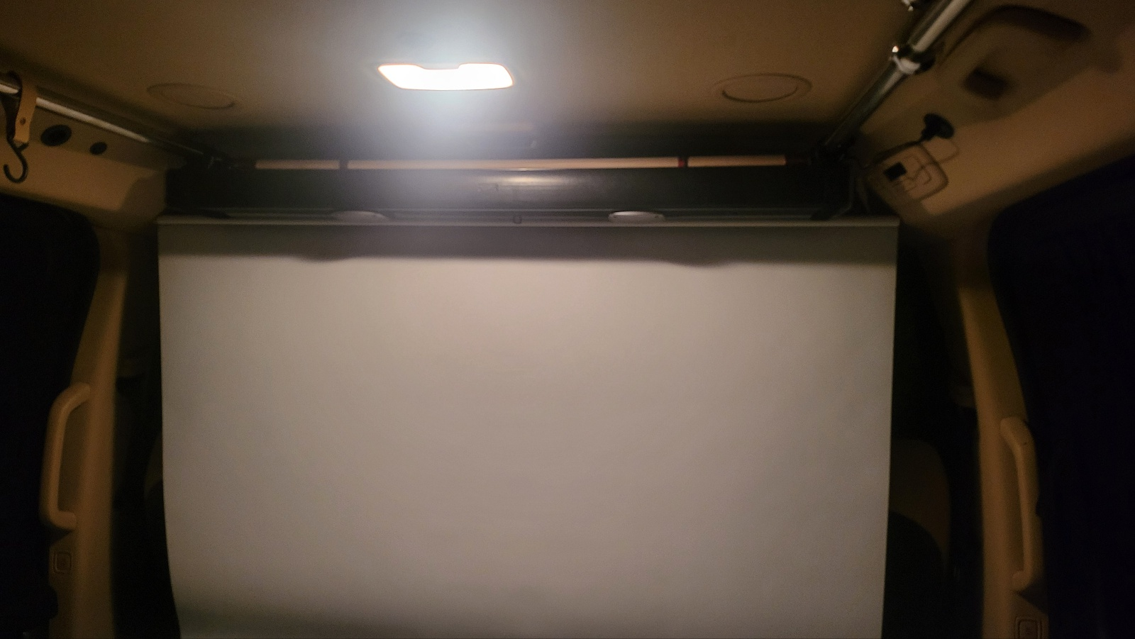 - 1열 뒤 천장에 장착해둔 사운드 바 (작업 상세보기) 상단과 측면 천장 세로봉위에 LED 조명 장착 하여 간접 조명 구현