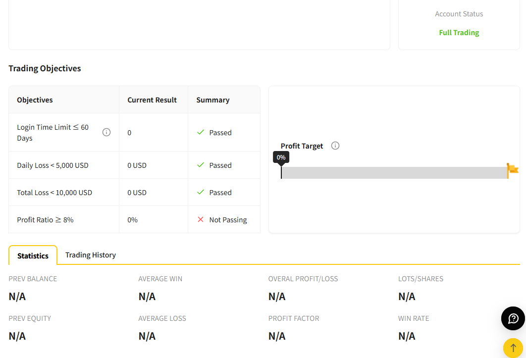 | Profit Ratio >= 8% | 챌린지 기간중 수익률 8% 이상 이면 합격. |