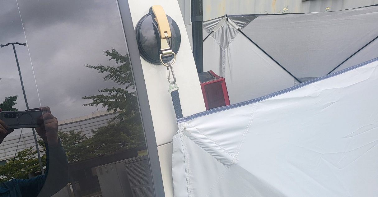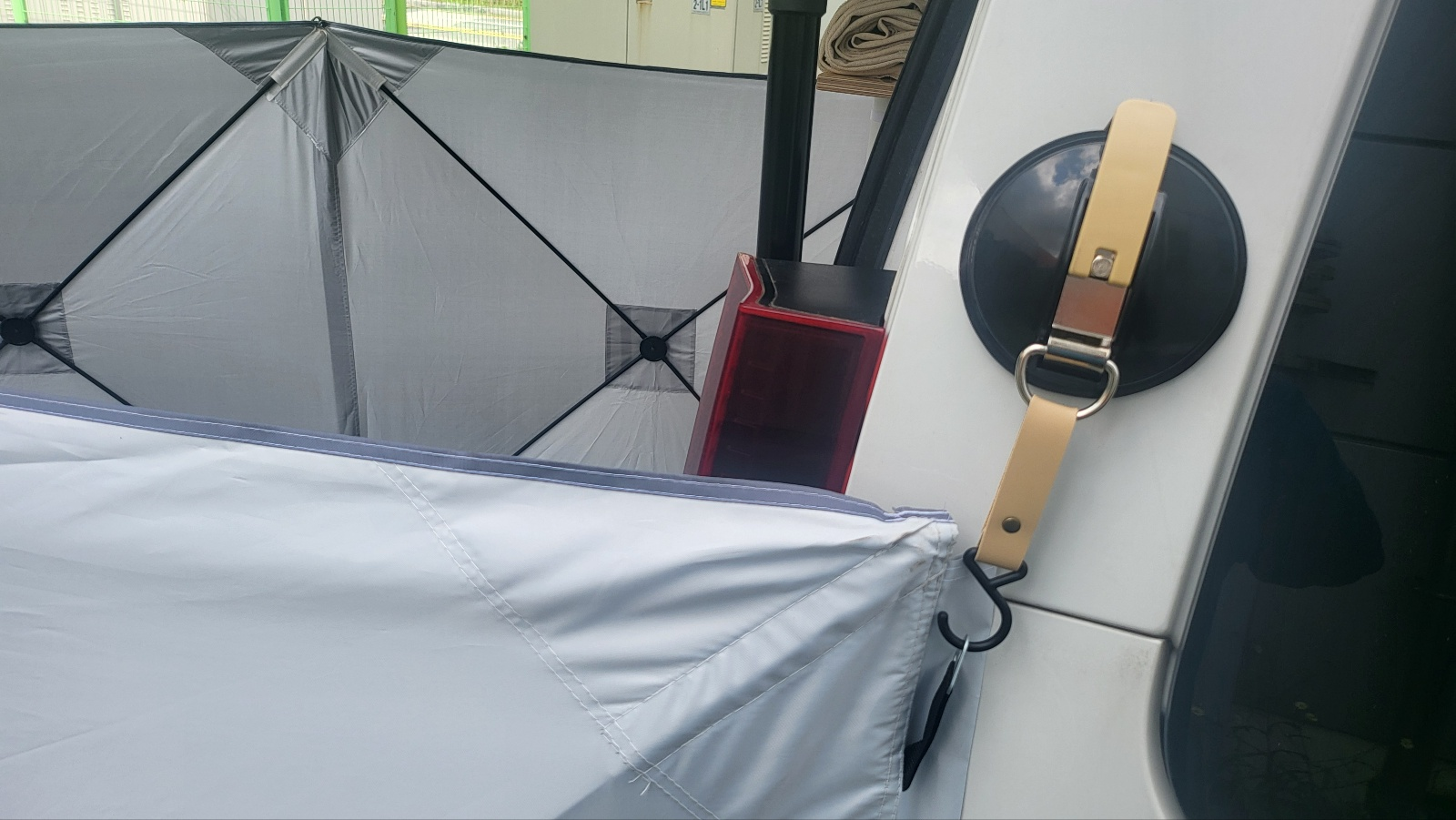 차량측면에 흡착판 부착하고 카라비너로 쉽게 탈착 가능