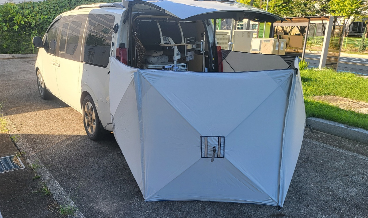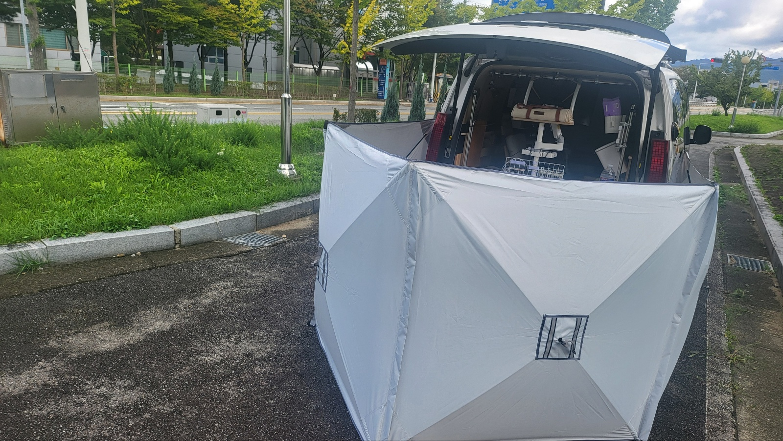 스타리아 후방텐트 보다는 설치 간단한 윈드 스크린