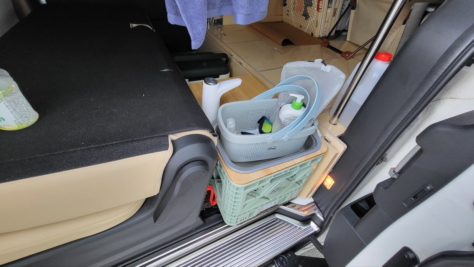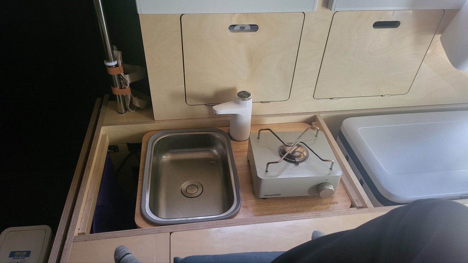 - 최종 실 사용시 물통 2개 넣고 다니게 됨. 물통 1개 5리터인데 라면 10개면 모두 소진된다. 여분의 물통으로 즉시 교체 가능하여 매우 유용했다. 또한 물통 2개 넣은 경우 폭이 박스에 딱 맞아서 주행 중 요동치치 않아서 매우 좋다.