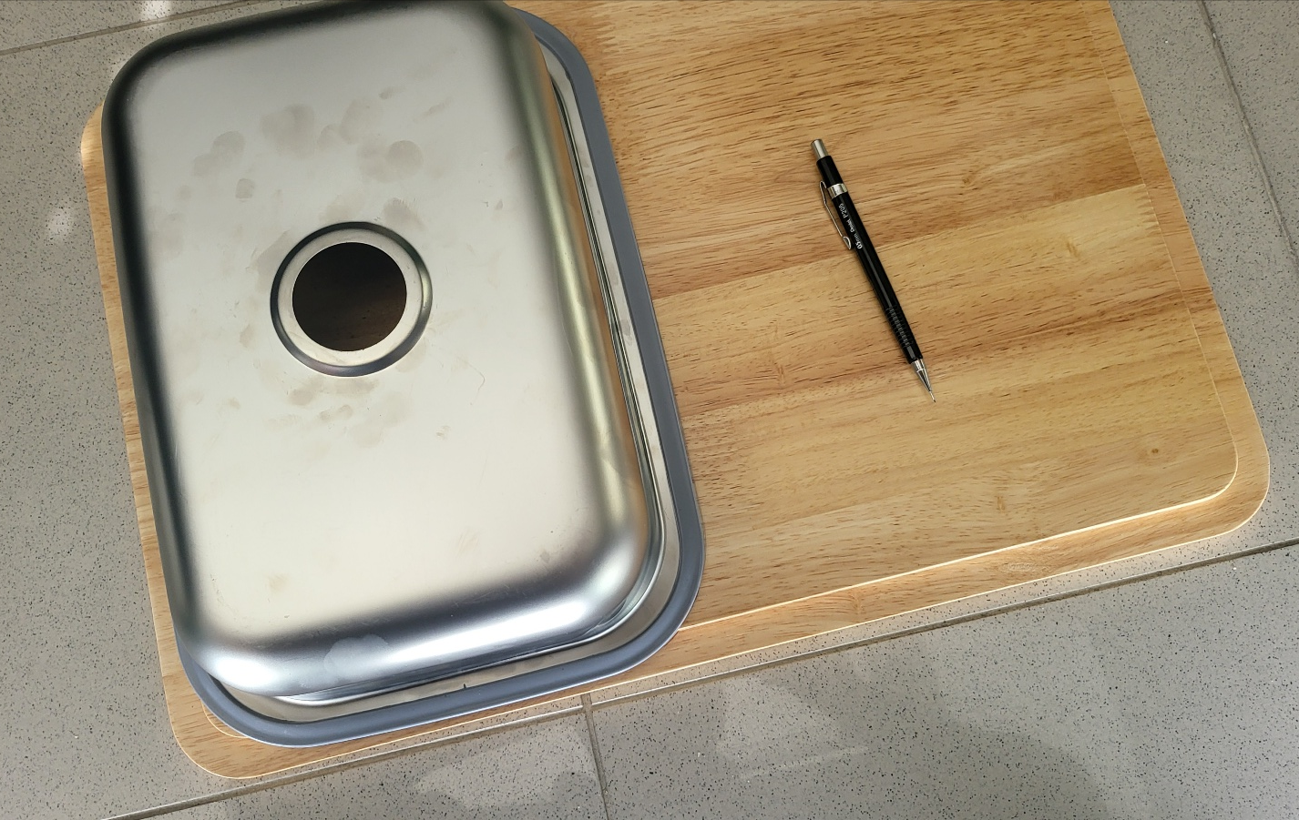 - 싱크볼 외각을 따라서 상판에 표시