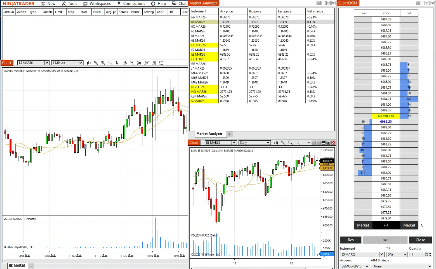 닌자트레이더 실행화면