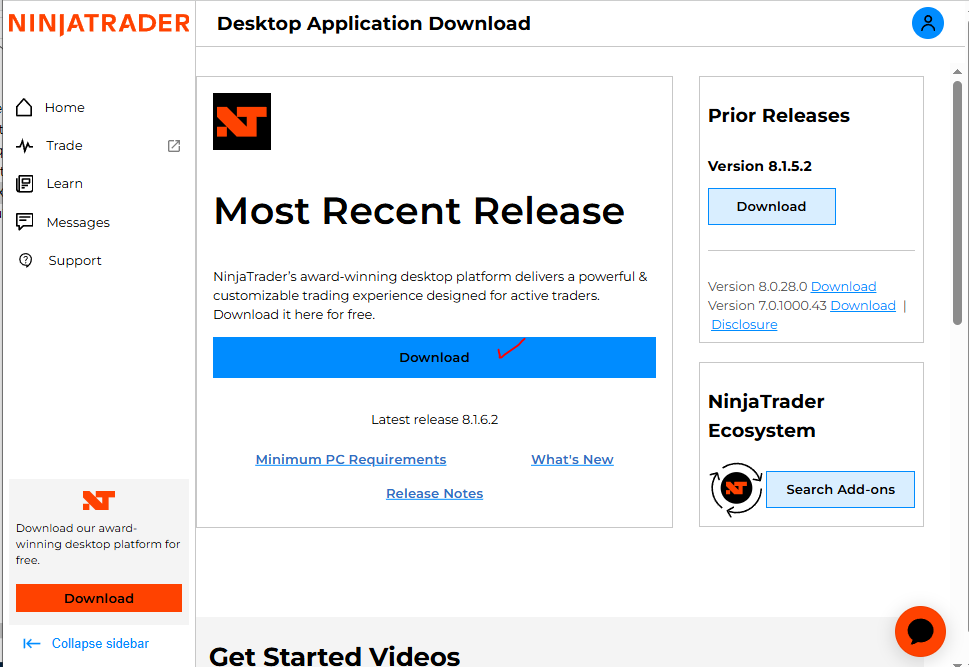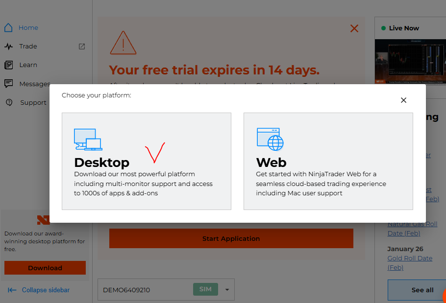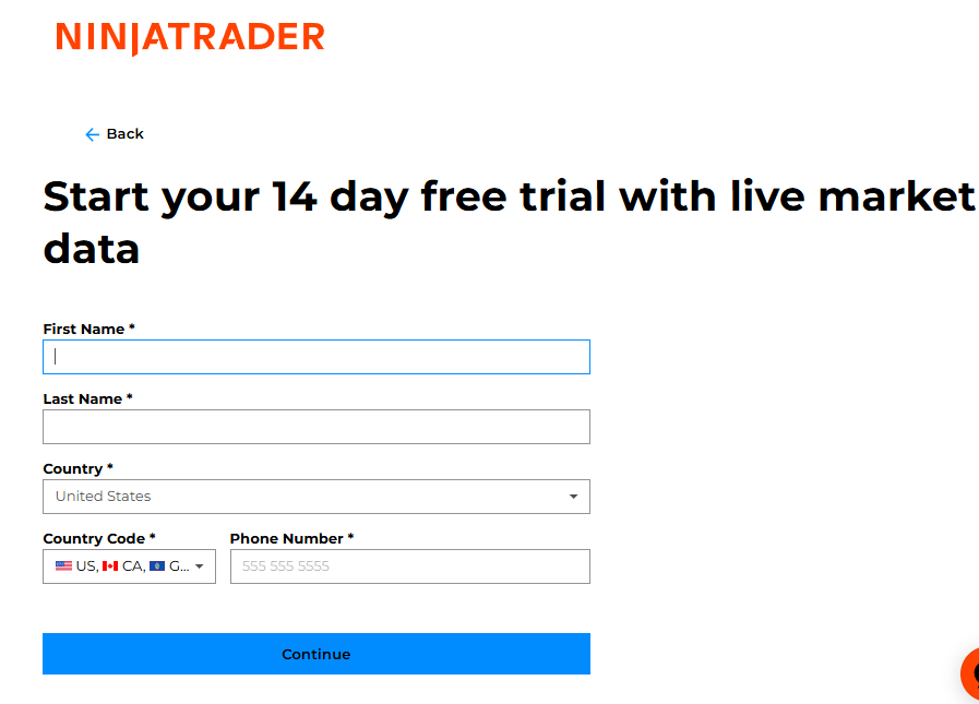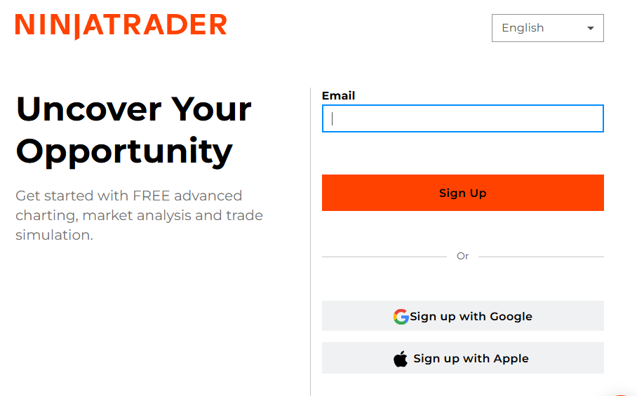 닌자 트레이더 사이트 https://ninjatrader.com/ 에서 OPEN ACCOUNT 한다.