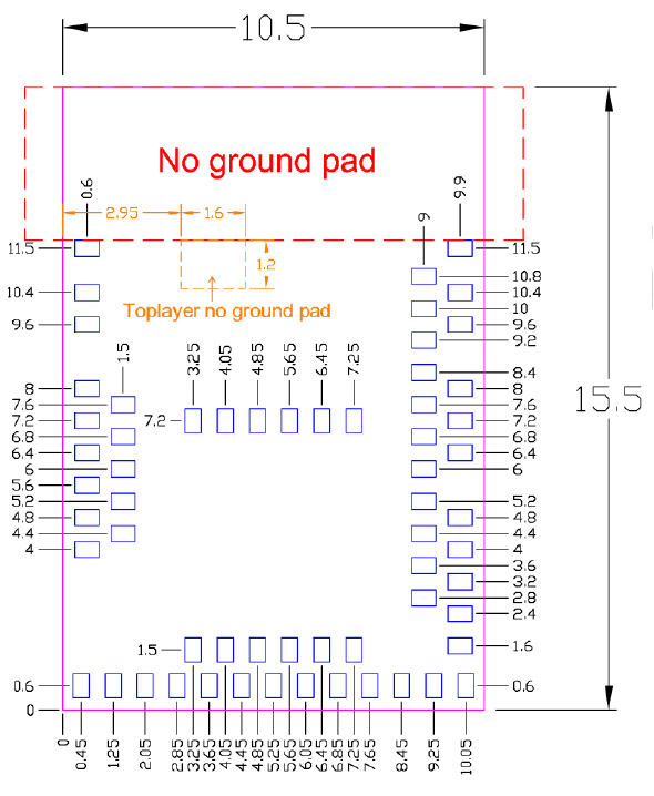 패드 1개 사이즈 : 0.6 x 0.4 mm