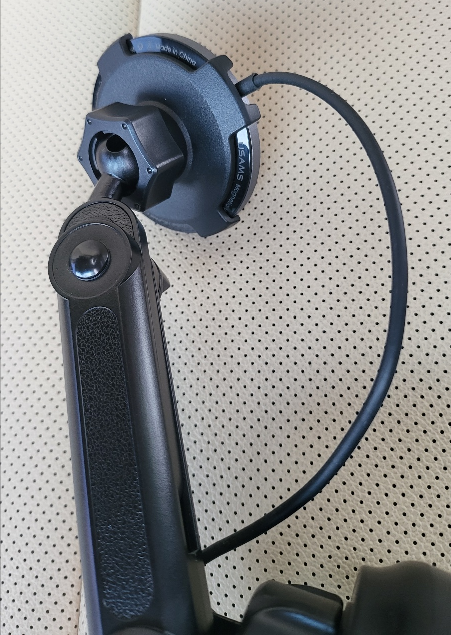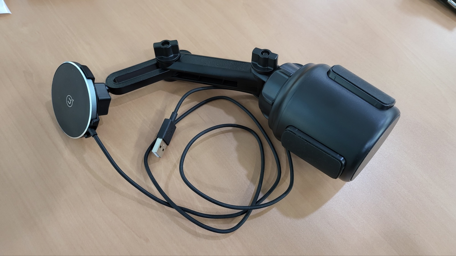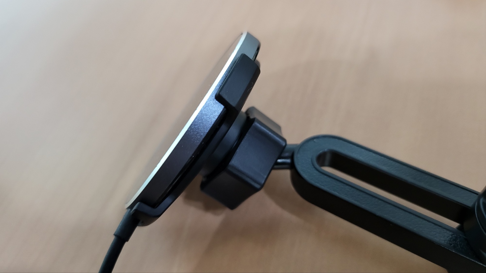 - 구매시 기본 제공되는 기기 고정 수단은 태블릿 처럼 면적이 넓은 것 거치 가능한 거치패널인데, 이것 대신 이전에 구입했던 자석식 무선 충전기 를 달았다(아래 사진).