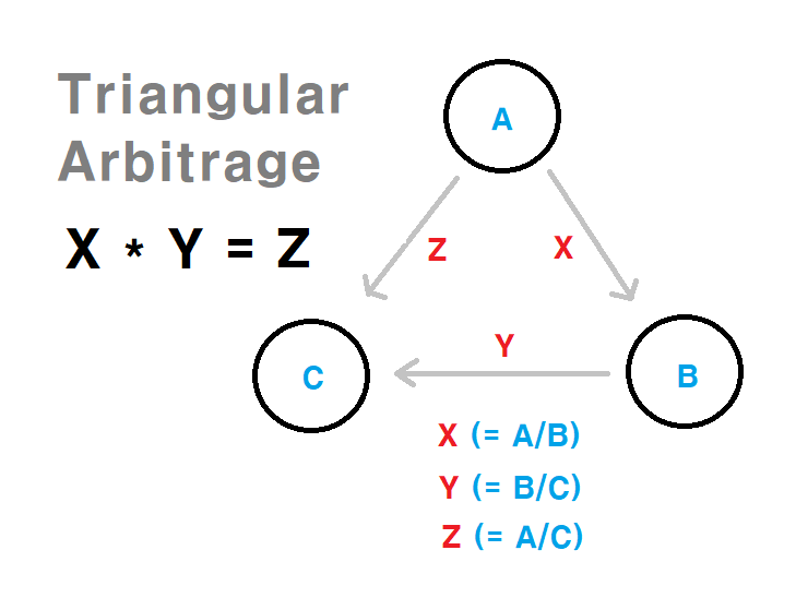 만일, X * Y > Z , X * Y < Z 인 상황이 발생했다면 3각 차익 거래 가능하다.