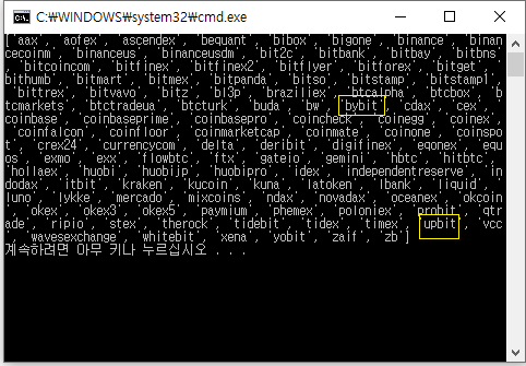 - ccxt 로 통신가능한 거래소 리스트가 보이며, bybit 도 보이고 upbit 도 있음.