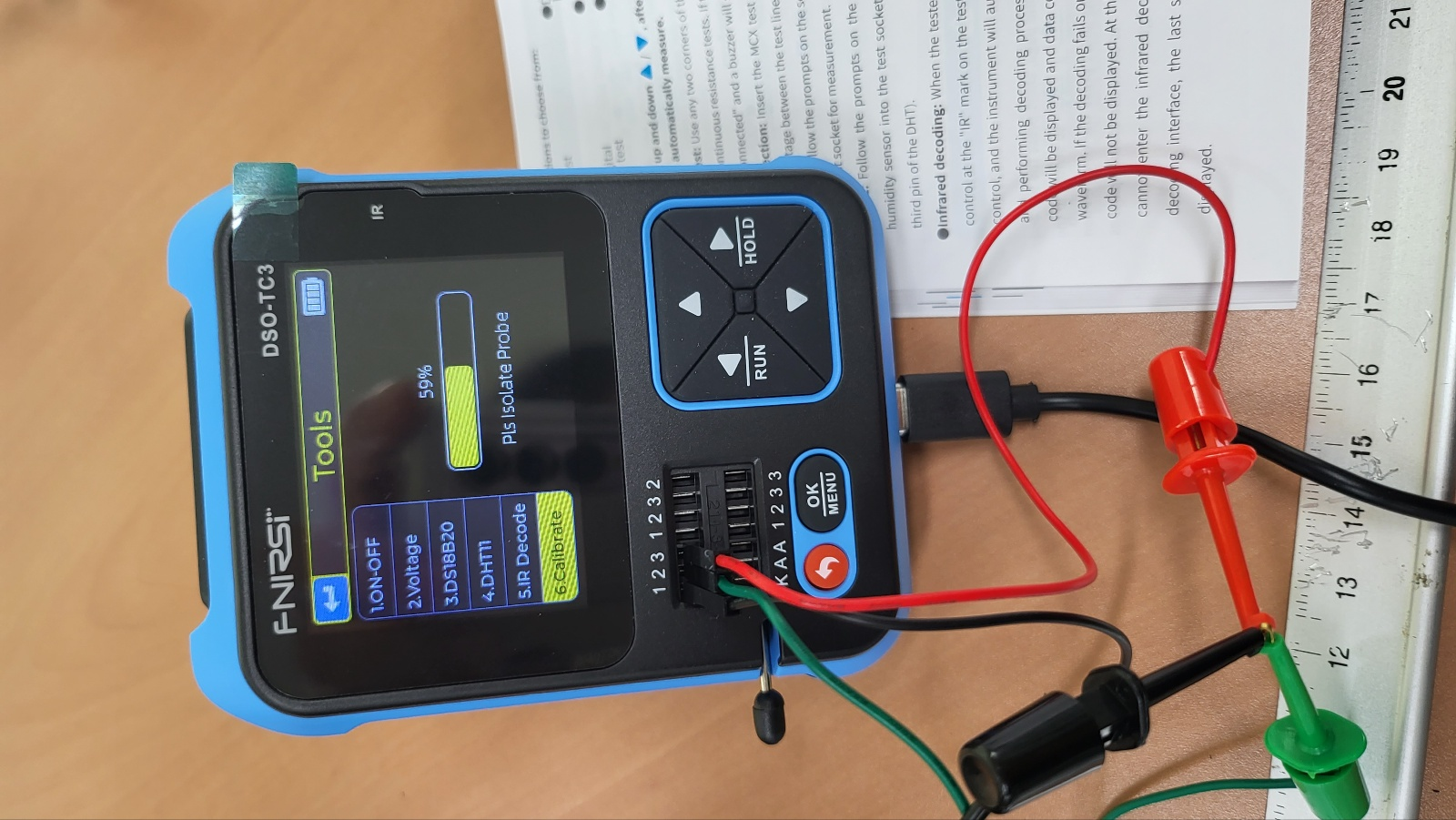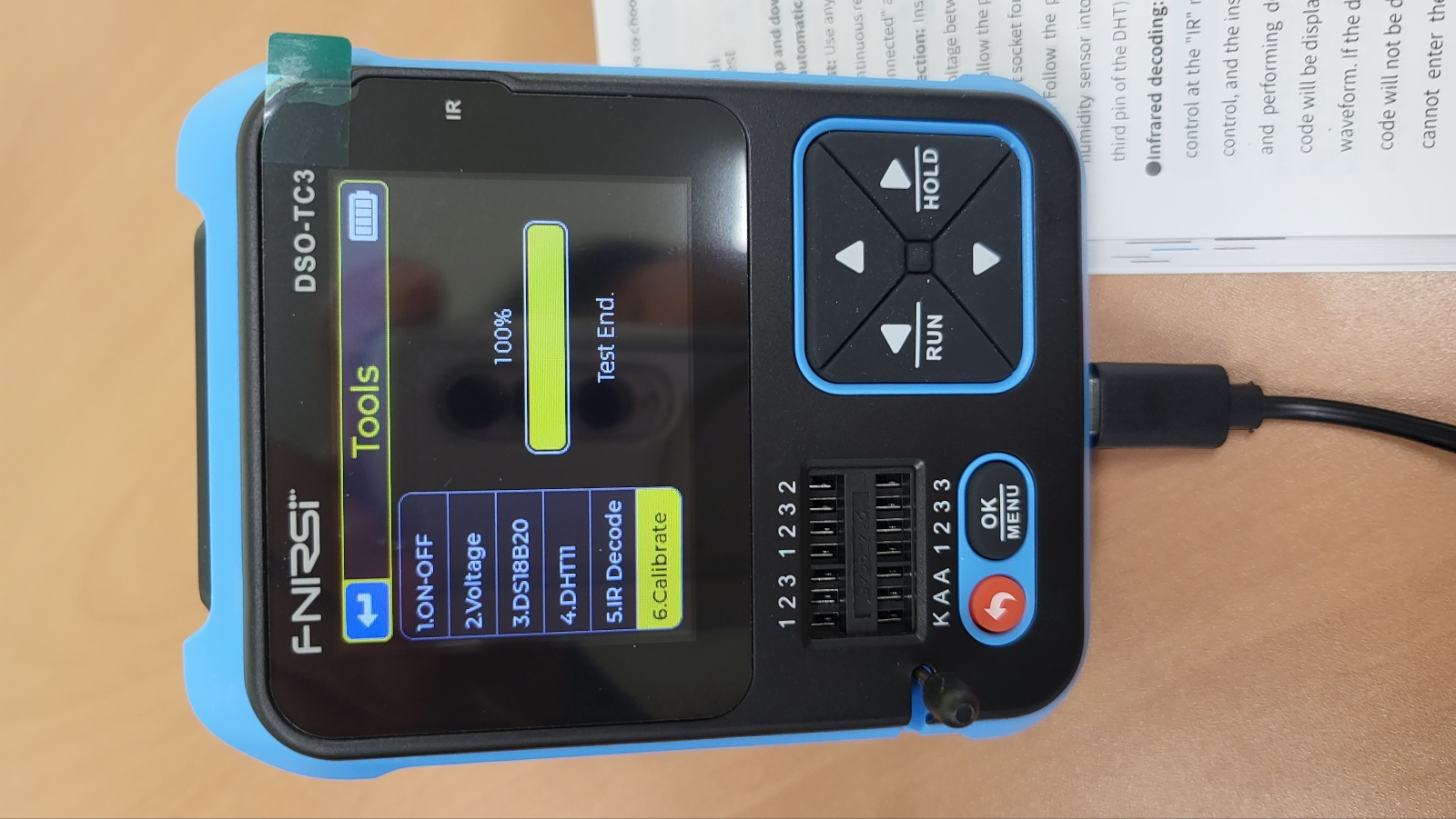 - 제공된 프루브 3개를 1,2,3 에 꼽고 팁을 모두 숏 시킨 상태에서 메뉴에서 calibration 선택하면 자동으로 보정 시작한다.