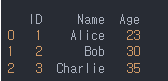 df = pd.DataFrame(data, columns=['ID', 'Name', 'Age'])
